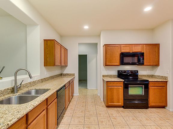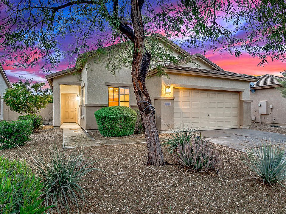 Amazing single level in Buckeye features low maintenance front yard and 2 car garage. Step inside to discover neutral paint, tile flooring in traffic areas, and a spacious great room with living & dining areas that flow seamlessly. The kitchen is equipped with matching black appliances, granite counters, ample cabinets, pantry, and breakfast room. All bedrooms have plush carpet. Master suite has a full bath with dual vanity, tub/shower combo, and walk-in closet. Lovely backyard is comprised of a covered patio and gravel landscaping w/nice evergreens. Come & see everything this home has to offer. Call & book a showing today!