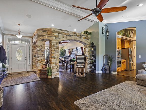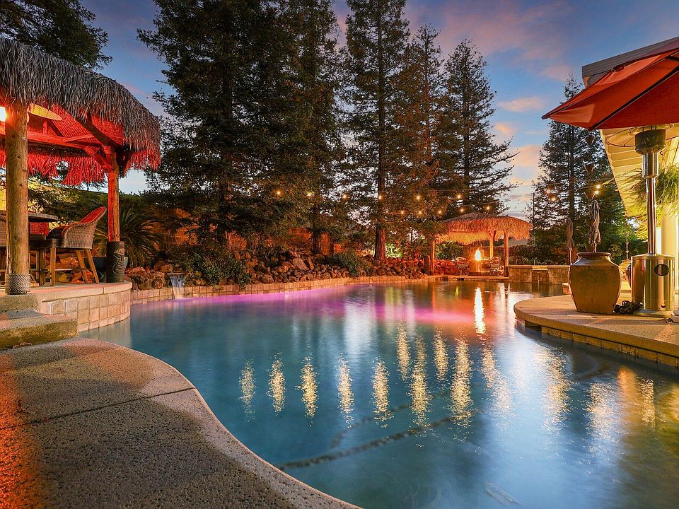 ENTERTAINERS DREAM!! This meticulously maintained 3 bedroom + Bonus room lives large. Over 2,000 square feet, upgrades everywhere inside and out. The outdoors are completely fenced for privacy, 40' Covered patio for year-round entertaining. Outdoor BBQ/ bar area, One of the larger pools you will see with baja shelf, rock wall and sheer descent water features & Hot tub. Your own putting green to keep you up to par. 3 palapas allow for large gatherings and yet separate seating to maximize the space for larger gatherings. Newer roof, Stone accents throughout the exterior, newer drip lines throughout the landscaping and professionally maintained. The interior greets you with a wall of windows off the great room, Cozy stack stone fireplace. Bonus room off the entry could be home office, formal dining, or game room as it is currently being utilized. Master Suite with separate jetted tub and tile shower. Walk-in closet with professionally designed organizers. Kitchen boasts a stainless appliance package including VIKING gas range, professional style vent hood, Granite slab and full tile back splash. Walk-in pantry for abundant storage. Center Island for food prep as well as peninsula with seating. Don't forget the built-in wine refrigerator. Commercial grade security system with cameras and audio. Built in sound system through the home and the property so you never miss a beat. Don't miss your opportunity as homes with this many features, upgrades and care don't come along that often.