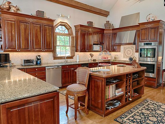 - RoomKitchenFeatures: Granite Counters, Pantry, Recessed Lighting, Wet Bar, Eat-in Kitchen, Bay Window, Floors-Hardwood, Cabinets-Stained, Bar, Backsplash-Tiled, Cabinets-Glazed