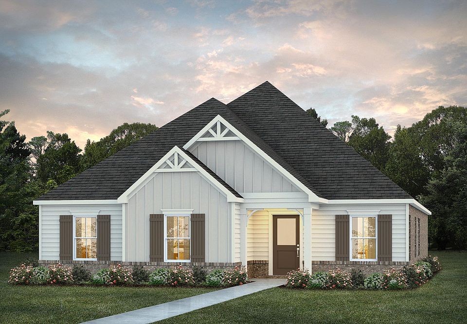 With 4 bedrooms and 2 bathrooms, the "Murphy" might just be our most quaint plan yet! This cottage home features 10" ceilings in the Great Room, Dining Room and Kitchen. The kitchen is what chef dreams are made of with a large island and large pantry. The master bathroom boasts a garden tub with separate shower, while the master bedroom boasts a large walk-in closet. With 3 other bedrooms, you will never feel cramped in this spacious cottage. This plan also has 2 covered porches for all of those dreamy, fall porch sitting days.