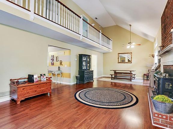 Amazing floorplan w/ a ton of space! Oversized kit w/ white cabinets, 3 ovens & pantry; Formal LR w/ hardwood type floors; wood burning stove; wet bar; formal DR; Family room w/ paneled walls, hardwood type floor & overlooking huge backyard w/ shed. Master on main; 2nd master upstairs; large secondary bedroom; deck; fenced yard; near cul-de-sac.