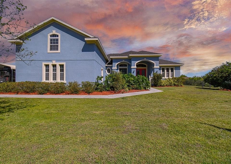 Welcome to Plant City's desirable Berry Road Estates community with NO HOA & NO WATER BILL!!! Central to Tampa and Orlando. One-year home warranty included. BEAUTIFUL home with open floor plan including 5 bedrooms, 3.5 baths, home office, and 3 car garage. Jack and Jill bedrooms, spacious Master bedroom with 2 walk-in closets, Master bathroom with garden tub, walk-in shower and dual vanities. Room to roam at 1.25 acres with 2 fenced areas. Covered RV parking with 50 AMP service. **NEW ROOF March 2023 / 2 NEW ACs and condenser in 2020 with UV light sanitizer Air Purifier / NEW EXTERIOR PAINT 2021 / NEW POOL SCREEN 2022 / NEW POOL LINER 2023** This home has much to offer, including a security system with cameras, a wired-for Leviton Integrated Network Home Theater, sunken vinyl pool with wood decking. Energy efficient double pane windows, Bamboo flooring in the living area and you'll love the granite countertops with rich maple cabinets in this stainless steel kitchen featuring a Bosch dishwasher, Kenmore refrigerator, induction oven and microwave.