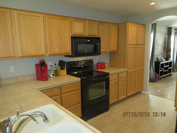 Nice single story Raylee home with large open floor plan complete with raised ceilings in great room and cozy fireplace / built -in entertainment center. Spacious kitchen with plenty of counter space and breakfast bar and large dining area. Large master suite and complete full master bath and vanity , garden tub , separate shower , walk-closet and also private access to covered patio.Cozy in back yard with grass and storage.