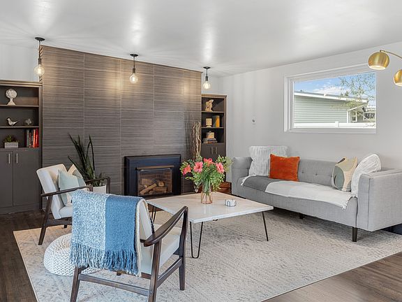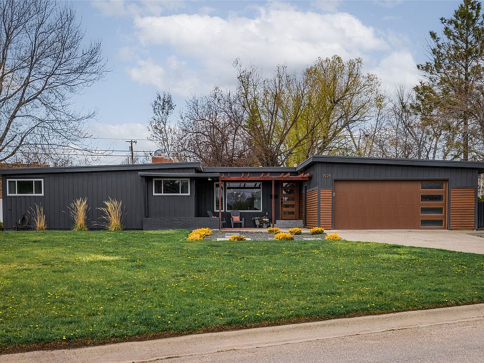 WELCOME HOME TO THIS BEAUTIFULLY UPDATED MID-CENTURY MODERN HOME LOCATED IN THE COUNTRY CLUB ADDITION OF FOX FARM! Situated on a corner lot, this 3 bedroom + bonus room/office (could be a 4th bedroom), 2 bath offers an open concept floor plan w/lots of natural light, a gorgeous tiled gas fireplace w/built-ins & refinished original hardwood floors! You'll find a remodeled kitchen w/granite counters, breakfast bar, pantry & newer appliances. The primary bedroom w/ a walk-in closet opens to a large private bath w/ a free standing soaking tub & tiled walk-in shower. All NEW WINDOWS installed on the ML in 2023. MAIN LEVEL LAUNDRY. The basement family room has been updated w/fresh paint, new windows & new flooring including carpet in the non-conforming bedroom. Newer roof (2019), updated electrical (2019), Central A/C, sprinkler system, & 2 car attached garage. The fenced back yard has a huge deck-great for entertaining & a big tree house. Meadowlark Elementary School! Listed by Jody Jakes.