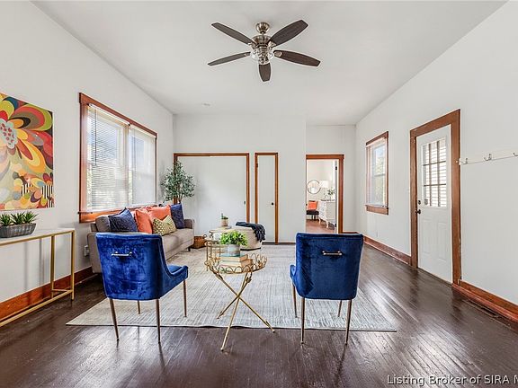 Charming and beautifully updated 3-bedroom, 1-bathroom shotgun home in the heart of New Albany. This gem features hardwood floors throughout, maintaining its historic charm while offering modern updates. The spacious living room is perfect for both relaxing and entertaining guests. The large kitchen boasts ample cabinet storage and generous countertop space, ideal for culinary enthusiasts. Step outside to the inviting back patio, perfect for outdoor gatherings. Additional features include a detached garage and an unfinished basement, providing plenty of storage and potential for customization. Located in a friendly neighborhood, this home is within close proximity to schools, parks, and local amenities. Don’t miss the opportunity to make this enchanting home yours! Schedule your showing today!