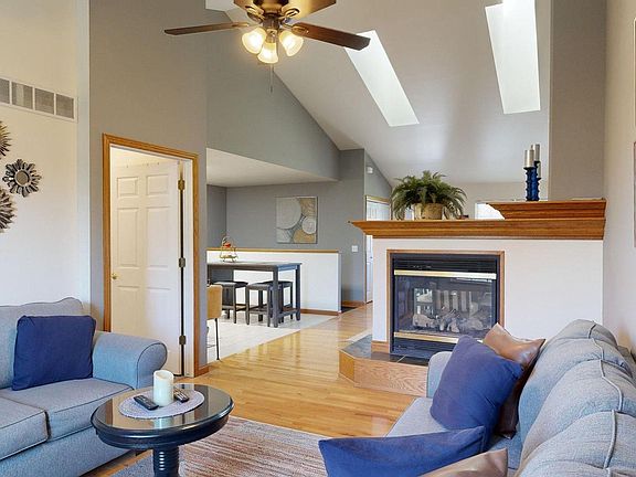 Beautiful, Must See Condo featuring many upgrades, open concept living room with double-faced fireplace, formal dining area, kitchen with eat-in dining area, main floor bedroom and full bath, utility room with 1/2 bath, lower level with 22ft entertainment/family room, second bedroom, potential third bedroom/office and another full bath. Attached 2 car garage. Rear patio area. Covered front porch.