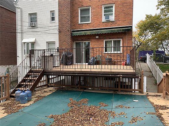Beautiful brick semi-attached home. Pelham Bay section of the Bronx. New windows, roof, kitchen, bathrooms. Spacious home featuring 3 bedrooms, fully funished basement, private entrance, new kitchen and bath, central AC. Lovely concrete deck with steps down to wooden sun deck with amazing large pool. Close to all shopping, transportation including trains and express busses, and hospital. Quiet tree lined neighborhood block.
