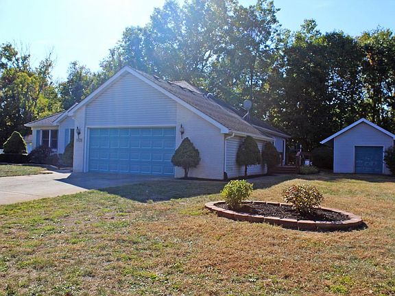 Spacious 1,840 square foot ranch home offers 3 bedrooms and 2 bathrooms with an attached 2 car garage plus a large 24x12 storage shed/workshop with heat and electric. The large lot has a peaceful and private tree lined backdrop, freshly updated landscaping, an irrigation system run from a well and an additional shed for housing the riding lawn mower included with sale. The inside hosts a large living room with FP opening to the eat-in kitchen and an additional rec room with sliders to the back deck. Kitchen includes appliances and hosts a breakfast bar and desk workstation area. The master bedroom offers a private master bath with separate whirlpool tub and shower plus a WIC. The other 2 bedrooms are nice sized with convenient access to the second full bathroom. With some cosmetic updating this home offers a wonderful space to call your own in a great neighborhood close to downtown Demotte. Being sold as is.