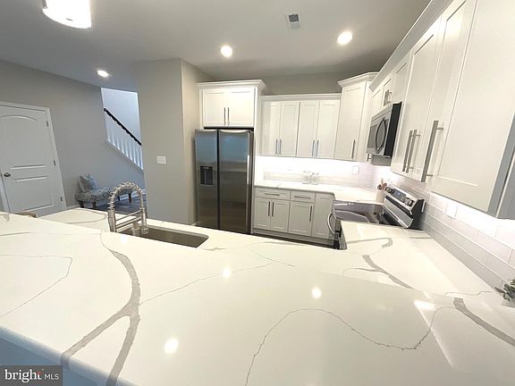 This remarkable New Construction build that checks all of your wish list boxes. Cozy front porch welcomes you into the Grand 2 Story Foyer Entryway. Open Concept Living/Dining, and Kitchen area includes recessed lighting and 9ft ceilings. Entertaining and Hosting is easily accomplished in this Kitchen, offering stainless steel appliances, an abundance of stunning granite countertops with elegant backsplash and bar top for additional seating. A half bath, Vinal plank flooring, and two storage closets can be found on the main floor with indoor access to the oversized garage that offers so much storage opportunity. Up the grand staircase you'll find the primary bedroom with Vaulted ceilings, and 2 walk-in Closets. Primary bedroom includes a full bathroom with double sinks, lighted mirrors, and a gorgeous full tile walk-in shower, with an additional rain showerhead and custom bench seating. Down the hall is an additional spacious bathroom for the other two bedrooms, and convenient second floor laundry closet. Off the back of the dining area are sliding doors that lead out to the wood deck.