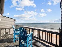 **Beautiful renovated oceanfront townhome in quiet community** Once you enter the front door you are greeted by detailed craftmanship through a hallway with 1 bedroom with 2 twin beds, 2nd bedroom with queen size bed and personal deck, as well as, a full bath with walk-in tiled shower, granite countertop and custom cabinet on the main level. Main level also houses the laundry area. As you go up the 1st flight of stairs you enter into the open floorplan of living, dining, and kitchen with half bath. All decorated and redone with granite countertops and custom cabinets. The view from the living room deck is breathtaking. There is also a deck right off the kitchen that overlooks the community pool. Go up the 2nd flight of stairs to the third floor to enter the private master suite with walk-in closet and private deck. The master bath also has granite countertops with two sinks, make-up table in between and custom cabinets with tub shower combo with tiled surround. Comes fully furnished. Seller offering 1 year 2-10 Home Warranty.