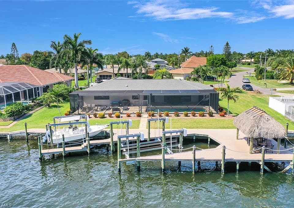 H.15865 -The views of the river are amazing from this gulf access pool home on a south facing triple lot one house off the river. Perfect for the boating enthusiast with a newer seawall, composite dock w/ tiki hut and 2 lifts (40k and 7K). The newer pool and oversized screened lanai w/ picture frame cage are great for entertaining and watching boats go by! This home has been in a successful vacation rental program ($44k in income in '19) and is being sold turnkey w/ leases in place which must be honored. The home has been recently renovated with a new kitchen, including wood cabinetry, granite countertops with breakfast bar, & ss appliances. Impact doors & windows and tile flooring throughout the home. The master is split from the guest bedrooms and has an updated master bath with custom tile shower, dual sinks, and a walk-in closet. The living room overlooks the pool and accesses the lanai through a set of sliding glass doors. There is an office/den off the living room & the guest bedrooms are spacious and share an updated guest bath. The 30x22 garage includes a storage closet/workshop under air. Mature landscaping completes this amazing home in the great Savona neighborhood!