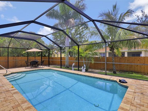 Welcome Home! ALL UTILITY ASSESSMENTS AND FEES ARE PAID IN FULL. You must see this Immaculate and Updated 4 Bedroom Home with an Open Floor Plan, Heated Pool, Brand New Air Conditioner, New Microwave and Dishwasher, New Impact sliding glass door, Diagonal Tile, Laminate Floors in Bedrooms, Plantation Shutters, and so much Storage. The Heated Pool with Paver Deck, Lanai and Screen Enclosure overlook the Large Backyard with Privacy Fence, providing you with the Perfect Peaceful Oasis to recharge and relax. The Pavers are set in Concrete, no worries about sinking or tracking sand into pool or house. The Master Suite has 2 Walk-in Closets, Dual Sinks, Fantastic Shower, Separate Water Closet and New Toilet. The 3 Guest Bedrooms are on the other side of the Home. All Bedrooms, Living Room, Kitchen, Dining Room and Master Bath are equipped with Ceiling Fans. Other features include a Huge Kitchen Island, Under Cabinet Lighting, Water Heater 2015, Energy Efficient Windows in the Living Room and Master Bedroom, Keyless Entry Exterior Doors and a Workbench in Garage. This Move-in Ready Home is located in a Quiet Neighborhood and NOT IN A FLOOD ZONE. Located near dining, shopping and schools.
