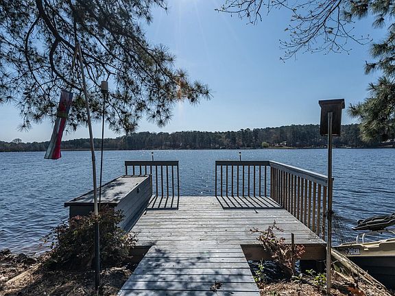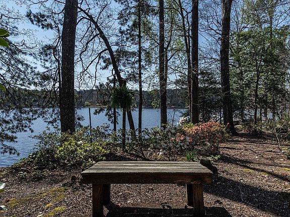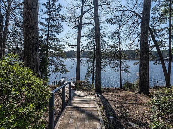 Wake up every day surrounded by NC's natural beauty in the coveted Golf East neighborhood at Carolina Trace, a gated lake and golf community. Rustic lakefront contemporary home on .46 acre lot with a gentle slope to its dock. Soaring ceilings in the foyer, living & dining rooms. The sunroom and deck extend the living space and provide excellent waterfront views. First floor features the owner suite, laundry, guest bedroom & full bath. The two story brick fireplace, natural wood tones and tiled foyer offer vintage vibes, while the kitchen's granite countertops, white cabinets, appliances and island reflect more recent trends. The second floor office and bedroom suite overlook the living room. A covered deck connects the 2 car garage with the main house. Lower level workshop w/ exterior entrance. Seller is providing a HSA one year home warranty to the buyers.