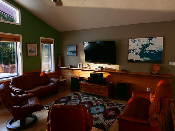 Solid built, 1983, durable and good for kids. Three bedrooms, two bath (main bathroom has two sinks); 1800 sq ft living space, 675 sq ft two car garage, 750 sq ft newly built shop (convertible to living space). House has been well maintained and has undergone continual upgrades; rebuilt bathrooms, kitchen, entryway, living room, hardwood floors throughout house, replaced roof with 45 year warranty Malarky Architectural shingles, fence rebuilt and stained last year, and outside of house repainted last year. Kitchen comes with custom built cabinets with pull out cabinet shelves, 6 burner duel fuel stove (gas cook top, electric oven, on island), large pantry, also includes specialty items such as built in spice racks and shelves. All bedrooms have built in dressers and cabinets, master bedroom includes shoe storage cabinets. Two bedrooms have built in Murphy Beds, and one has custom built book shelves. House has a large concrete driveway and a covered carport that includes a storage above and is home to a full house generator and additional storage. Fenced in grassy yard complete with fruit trees and blueberry bushes; great area for a green house. Back yard, is large and has a concrete patio, it is also terraced for gardening, and has a flowing back pond.