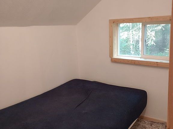 1 loft, 1 room and 1 bath and a nice living room. 700sqf rebuild last year. The house has a big shop too non insulated. It has well electric and septic. The house is on gravel and concrete block and it has a carport and a unfinished caban on a second building. Motived seller