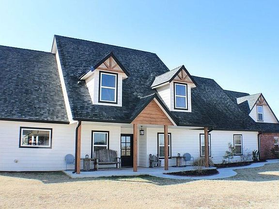 GORGEOUS NEW custom home on 3 acres in a great family neighborhood! EVERYTHING is new! Quartz, Granite and butcher-block countertops throughout. Above counter sinks in bathrooms. Large farm sink in kitchen. All stainless steel appliances. Vaulted ceiling in living. Stained concrete throughout. Actual mudroom right off garage. Massive covered back porch with a beautiful view to die for! Master bath feels like a spa oasis with 7ft rain showerhead and free standing tub. Dreamy light fixtures throughout. HUGE bonus room on second floor that makes for a great play/gameroom. Lifetime impact resistant shingles that save up to 30% on insurance. Fenced yard for dog. Underground storm shelter in 3 car garage. Immaculate home at great price in a growing community! Hurry, won't last long!