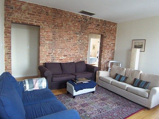 - exposed brick walls in living room.