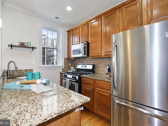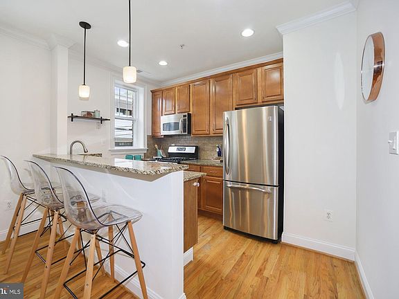 Looking for lots of natural light? This Top level corner unit has multiple windows with both north and east facing exposures. The living area features a cozy seating area and an open kitchen with bar seating. Enjoy the tidy kitchen with granite counters, full size stainless steel appliances, and gas cooking. Warm oak flooring continues into the hallway and bedrooms. This is a True two bedroom, one of which has an ensuite bath. Both bathrooms are full size with tubs. In unit washer/dryer, Spacious closets, Pet friendly, Investor friendly (with low rental ratio), low condo fee. Located in the charming Bloomingdale Historic District surrounded by exquisite Victorian architecture, the condo is within a block of numerous restaurants with take out and open air seating, There are also several nearby community outdoor areas, including Crispus Attucks Park, and the Common Good Community Farm.