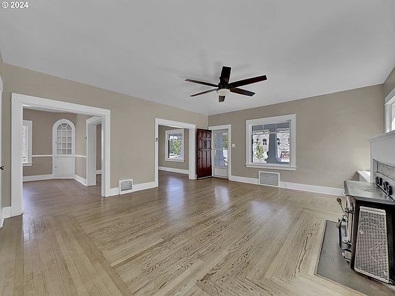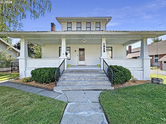 This classic 4 bedroom 1 ½ bath home brings together craftsman beauty & the best that downtown Baker City living has to offer. Bathed with plenty of natural light, original wood floors & trim flow through the main floor and continue upstairs. Large spaces throughout the entire house create a feel of early 20th Century grandeur as you move from room to room. Recently updated bathrooms and new interior paint are on the list of upgrades that the current owner has completed. A comfortable basement provides plenty of room for laundry, mechanical equipment, storage and a bonus space that's the perfect setting for exercise space, hobby room or more. The yard space surrounding this home is private and protected by rod-iron fencing with lockable gates. The backyard, currently planted in grass and bordered by a detached garage on one side and a small workshop on the other gets ideal sun for a small garden space. A large, newly painted covered deck provides partial protection from the weather and steps down to access the back yard, detached garage and the off-street, paved parking area at the north end of the property. A full length covered front porch looks out onto Baker City's historic 4th Street, just across from the historic Baker County Court House and blocks from all that downtown has to offer. This home is a true gem located in one of Baker City's most desirable historic neighborhoods. When you come to see this home be sure to schedule time to tour the surrounding neighborhood and beyond. You'll find the best that Northeast Oregon has to offer!