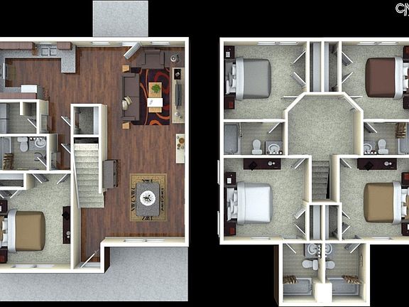 Welcome to the Retreat, Columbia's premier cottage-style student living. This lovely cottage features two bedrooms, each with their own full bathrooms with tile floors, and so much space! High ceilings and crown molding throughout the first floor. Walk through the great room into your open dine-in kitchen, with beautiful cabinetry and out the back door to your patio, which is perfect for grilling on a warm South Carolina night! Also on the first floor is a half-bath with beautiful tiled floors. Walk up the stairs and fall in love with the built-in book shelf. The second floor laundry closet comes equipped with a washer and dryer. This pet- friendly neighborhood has so many amenities, including green space for pets! Resort style TWO pools, clubhouse with TWO fitness centers, basketball court, putting green, gated entry, and so much more! Be sure to schedule your private showing.