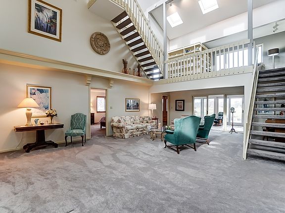 Looking for the ultimate entertaining house that will be the topic of conversation? This contemporary home is ready for the next owner w/ new roof, skylights, windows, flooring throughout the house, remodeled kitchen, updated landscaping, garage doors, almost all of the ceilings have been Spanish laced, new interior & exterior paint, furnace for lower level & new ac for upper level. Enter the grand foyer to a wide open living rm which can accommodate any size & layout of furniture. To the left are three bedrooms all sharing a jack & jill bath. There is a half bath just off the entrance. To the right of the living rm is a staircase that goes to the 2nd and 3rd level or leads to a sitting area that could be anything you wanted it to be. There is a bar area w/ wine chiller that then leads to the open kitchen & breakfast area. The kitchen has updated stainless appl & quartz counter tops w/ lots of space work. The laundry is off kitchen & garage. The family rm is off the breakfast rm. At the back of the house on the main level is a formal dining rm as well as a sun porch. Entertain outside on the deck w/ plumbed gas line for grills. Tucked away behind the formal living rm is a den. Upstairs is a small library & the master suite which can be a bedroom & sitting room. There are two walk in closets & a fully updated bath. The loft is on the third level.. The bsmt comes complete w/a bar & is plumbed for a sink & possible toilet. All you have to do is pick out your flooring.