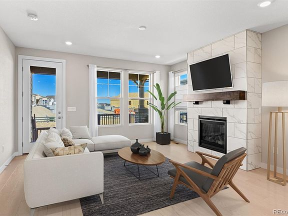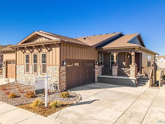 Welcome to Colorado's 2022 Community of the Year--The Canyons in Castle Pines. Filled with rolling hills, rocky outcroppings, & natural ravines the beauty and high-end amenities make this feel more like a luxury resort than a suburban neighborhood. From 15 miles of trails & numerous parks, to The Exchange coffee house, the inviting pool, or the sprawling event lawn for morning yoga, this great home is part of a fantastic community and enticing lifestyle. Backing to that beautiful open space in the First Light neighborhood, this 3-bed, 2-bath ranch paired home is an accessible option to plant roots to enjoy all of the goodness with none of the hassles--front yard landscaping maintenance & snow removal is taken care of. Not that you'll need much of the latter given the full sun of a south-facing home. The main living area is entirely open-concept, with tons of natural light (don't worry, the Sellers have already installed highly adjustable window coverings so you adjust the light and privacy to your taste). With blond LVP flooring & light neutral colors the palette is sophisticated. Bedrooms have light gray carpeting making them quiet & warm. The kitchen has a bounty of counter space, cabinets, and a large island with seating & an under mount single-well sink and gas stove. A rustic wooden beam mantle accents the gas fireplace. The primary bath has dual sinks, an oversized shower, & cavernous walk-in closet. A spacious laundry room off the garage comes with washer, dryer, & utility sink. An open railing stairway leads downstairs to the full unfinished walk-out basement that doubles the size of the home & is untapped potential with four windows, a double panel sliding door, and stamped concrete patio area under the deck. Make your way out to the expanded covered deck upstairs to gaze at the hills and waters of Reuter Hess Reservoir to the northeast, or mountain tops to the west.
