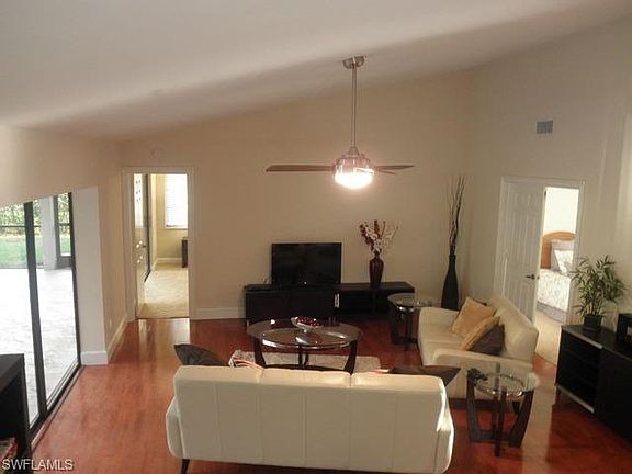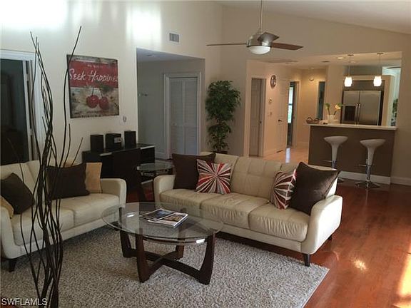 Furnished 3/2 bath contemporary style home on over sized lot with large free form pool and spill over spa also offers private backyards. Custom double front doors and rich wood flooring are impressive, providing inviting feel for this home. Featuring open split floor plan. Large sliding glass doors open to even larger screened in lanai area great for fun and entertaining. The remodeled modern kitchen features white high end granite and stainless steel appliances. Custom build in cabinetry in the dinning area as well as custom made granite table. The master bedroom features large walk-in closet & remodeled nice sized master bath. Currently furnished to comfortably sleep 6 people. New AC, New water and pool heater and much more ....