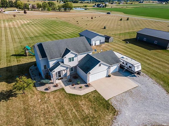 *Price reduction* This beautiful 4 bedroom, 2.5 bath home on 2.75 acres is conveniently located minutes from both downtown Auburn and I-69. Enter into the impressive two story foyer with open staircase. Just off the foyer is a light and bright formal dining room, complete with custom barn door. The great room opens to the spacious eat-in kitchen, featuring maple cabinets, a prep island and 4 year old kitchen appliances, which stay with the home. The large primary bedroom features a walk-in closet, private full bath and twin sinks. Neutral colors throughout make this stunning property move-in ready. The home also features a circle drive, 3-car attached garage, heated 32x24 pole building (built in 2017) and garden shed. The options for storage are endless! Geothermal heat, well & private septic complete this magnificent property.