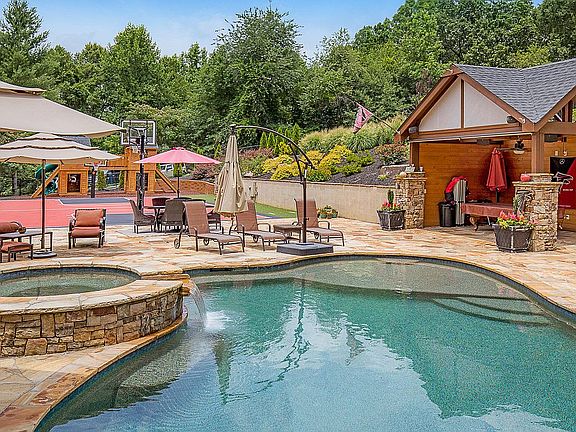 Exquisite 4 sides brick home situated on 6 acres has been completely renovated to like new condition with hardwoods galore. Luxurious master suite on main with sitting area,his&hers walk-in closet. Master bathroom with jetted tub,separate shower and double vanity. Gourmet kit.w\ss appl.granite counter tops,tile back splash opens to bright keeping rm with fireplace. Upper lvl has 3 large bedrooms all with hardwoods and walk-in closets. Finished terrace with over sized guest bedroom,full bath,living room,den,game room and home office. Detached 2 car garage has a large One BR Apt w/great rm,living rm,kitchen with new appliances 1.5 baths. Over sized deck overlooking inground pool,guest bar,sports court,and whirl pool perfect for entertaining.