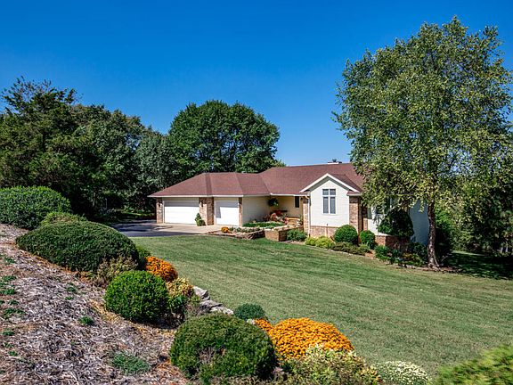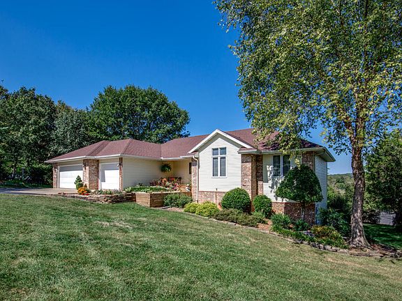 Immaculate, walkout basement home on 1.2 acres in Nixa. Main level offers living room w/17'ceilings, track lights & woodburning fireplace w/blower. Kitchen has nice Ash cabinets, granite counters, tumbled travertine back splash, stainless steel appliances (new stove), ceiling speakers & dining area; laundry room. Large master bedroom w/Eastern white pine hardwoods, ensuite w/jetted tub, updated walk-in shower & large walk-in closet. Two addtl bedrooms & full bath. Basement has 2nd living area, 2 bedrooms (one could be 2nd master), full bath, laundry room & storage closet. Bunk room w/6 built-in bunk beds. Deep 3 car garage. 3 decks outback w/ views of beautiful, extensive landscaping, water feature & outdoor fireplace & patio. Country living at its best w/all the conveniences of the city.