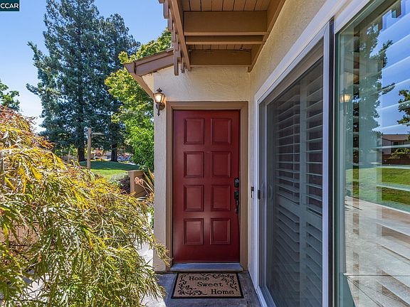 Welcome to your new home in Sunset Park complex, ideally situated within walking distance to Countrywood Shopping Plaza. This stylishly designed residence offers modern comforts and convenience in every detail. The gourmet kitchen is a culinary delight, featuring a quartz waterfall countertop and top-of-the-line appliances. The primary bedroom boasts floor-to-ceiling mirrored closet doors, complemented by updated bathrooms featuring contemporary finishes. Throughout the home, you'll find high-end luxury vinyl planks, dual pane windows with wood shutters, and ceiling fans in the bedrooms for added comfort. Additional features include a laundry closet, an elegant built-out coat closet at the entry, and modern Nest and Ring technology for enhanced security and convenience. Inviting patio, complete with a shade sail and potted plants, connects to a 1-car detached garage, and is perfect for relaxing or entertaining. Enjoy the central location within the complex, which offers HOA amenities such as tennis courts, a swimming pool, and a clubhouse for leisure and recreation. Conveniently situated near the Canal Trail, PH Bart Station, and top-rated schools, this property offers the best of suburban living. Don't miss the opportunity to make it yours!