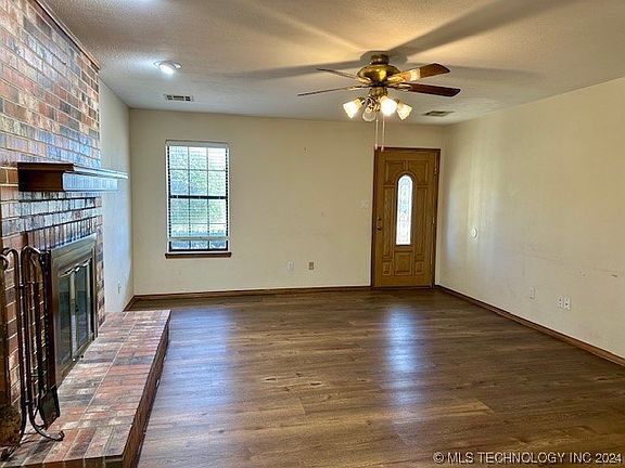 BRAND NEW ROOF is currently being put on. Welcome to 1929 Parkway Cir, Durant, OK! This charming single-family home, built in 1986, offers a cozy haven with 3 bedrooms and 2 bathrooms across 1,536 sq. ft. The property boasts a well-maintained interior, including a spacious living area with wood burning fireplace, a functional kitchen, dining room and an extra room that would be a perfect office or craft room. Granite countertops in kitchen and bathrooms. Kitchen features a pantry, dishwasher range/oven and microwave. Two garage incudes a storm shelter. Nestled in a peaceful neighborhood, the home provides a serene retreat. The property features a beautiful yard, adding to its curb appeal, while the surrounding community offers a mix of tranquility and convenience. Metal shed with concrete floor (appr. 18 X 18), overhead door and single door will hold all the family toys and lawn equipment. There is an additional slab behind the shed providing a foundation for a large dog house, carport or children's play house. The backyard has a privacy fence.