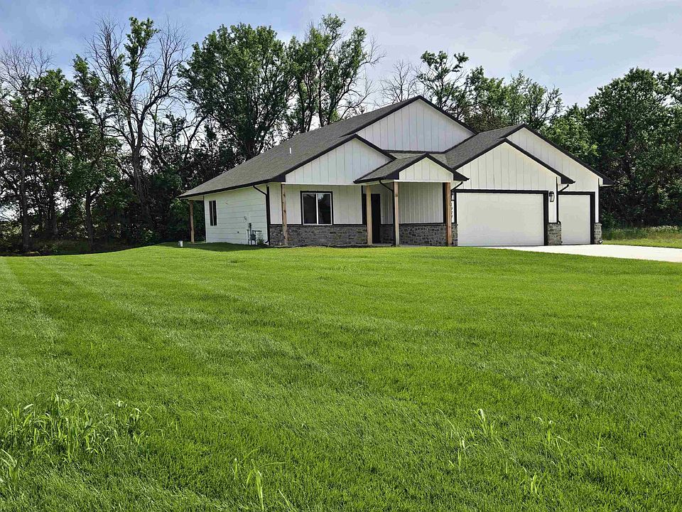 This no-step entry backs up to a tree row, on an extra big cul de sac lot, and has a covered front porch and back patio to watch the wild life in the peace and quiet of country living. Just a short hop to the local Dillon's and YMCA, or HWY 96. Save on your monthly bills with an upgraded energy package and low Sedgwick CO taxes with 1.15 mil levy. Welcome to your FOREVER Home!