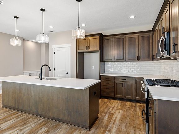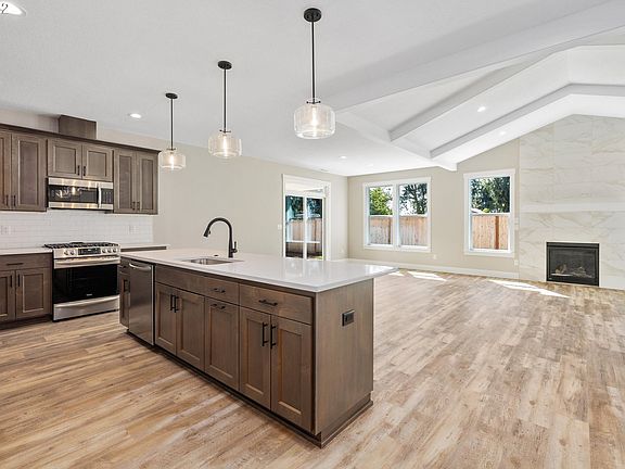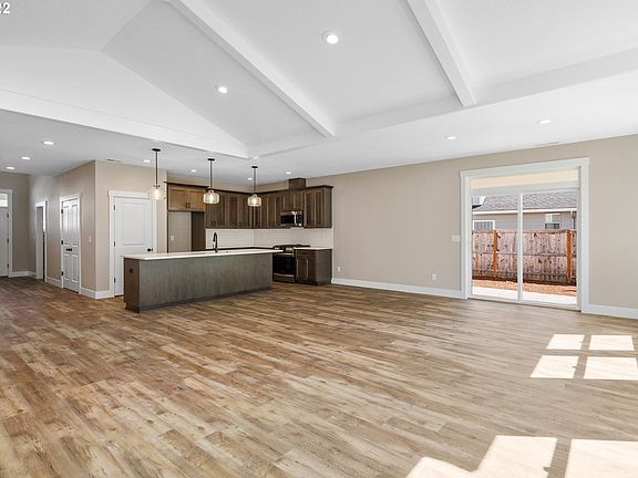 Open great room for summer time entertaining. Kitchen has large island and pantry. Wood floors and vaulted ceilings with custom beams. Primary suite with soaker tub. Expand the entertaining out doors to the covered patio with custom t&g ceiling. Premium lot at the end of the road. Small HOA pays for landscape maintenance at 13th Ave. Taxes TBD. Listing agent related to seller. Buyer to verify schools.