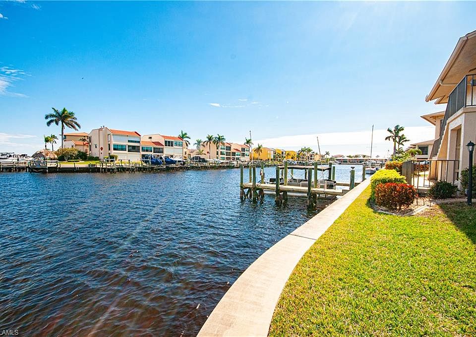 NEW FIRM REDUCED PRICE FOR QUICK SALE.....VACANT QUICK CLOSE....... 2/2 SAILBOAT ACCESS..... 2ND FL..... .....RIVER VIEWS ON WIDE DIRECT ACCESS INTERSECTING CANALS...........NO IAN DAMAGE OR WATER INSIDE UNIT...2 FLOOR PERFECT SAFE VIEWS TO ENJOY SUNRISE AND SUNSETS. EXTRA CLEAN AND WELL MAINTAINED, ....BEAUTIFUL WHITE PLANTATION SHUTTER INTERIOR OF UNIT......EASY CLEAN....NEWER UV SHADES FOR ENTIRE LANAI.................. SPACIOUS SPLIT BEDRMS FOR PRIVACY.......DOUBLE SINKS IN MASTER UPGRADED IN BEAUTIFUL WHITE QUARTZ.......LARGE WALK IN CLOSET IN MASTER WITH VIEWS OF THE BEAUTIFUL RIVER AND WATERWAYS......UTILITY ROOM WITH WASHER/ DRYER........EXTRA STORAGE IN AND OUT OF UNIT WITH GARAGE,.......GRANITE KITCHEN U SHAPE WITH VIEWS OF WATER ... NEWER A/C AND HOT WATER TANK.......ELECTRIC HURRICANE ROLL DOWN SHUTTERS......NEW FRONT DOOR AND HARDWARE............END UNIT WITH PLENTY OF WINDOWS. LIVEABLE LANAI TO ENJOY BOATS PASSING BY ....... NEWLY RESURFACED LG. HEATED POOL.....SEEING IS BELIEVING THIS SAILBOAT ACCESS 2/2 WITH GARAGE...... COMMUNITY BOAT DOCKING.........ENJOY MOST POPULAR LOCATION IN SOUTHERN CAPE ......CLOSE TO BRIDGES TO BEACHES.......RESTAURANTS, SPORTS BARS.......FITNESS CENTERS.......SHOPPING.....MEDICAL URGENT CARE AND HOSPITAL.......CHECK THIS OUT AND COMPARE VALUE TO VIEWS OFFERED IN THIS OPEN FLOOR PLAN UNIT......... 5 MINUTE WALK DOWN THE STREET TO NEW UPGRADED JAYCEE PARK WILL OFFER FUN FOR THE WHOLE FAMILY AND FRIENDS VISITING AREA WITH ENTERTAINMENT, MUSIC DANCING, DOCKS, GOURMET FOOD TRUCKS, EATERY ETC, STAY TUNED UNDER CONSTRUCTION NOW.......COMING SOON...UPGRADED JAYCEE PARK CHECK IT OUT ON LINE .........FUN TO WATCH DAILY NEW ITEMS ADDED...........