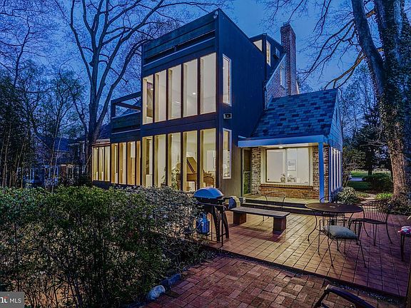 Welcome home to this stately Colonial with striking contemporary addition including rear walls of glass sited on a private 11,000 square foot lot with room for a pool in sought after Crestwood! The wide entry foyer with coat closet and stunning views through the rounded arch to the trees invite you into this special home. A study with built-ins and a powder room, table space kitchen with yellow limestone counters, living room with fireplace and built-ins, family room (with room for piano) and sunroom complete the main level. Upstairs you will find 3 bedrooms and 2 full baths including a roof top deck off the 2nd bedroom and a sitting room in the master with a wall of closets. Fixed stairs from the hall lead to the 4th bedroom suite containing the 3rd full bath and 2nd roof top deck with amazing tree top views. The walk out lower level with separate entrance features a recreation room with kitchenette, 2nd fireplace, laundry room, 4th full bath and access to the garage.