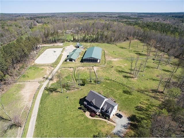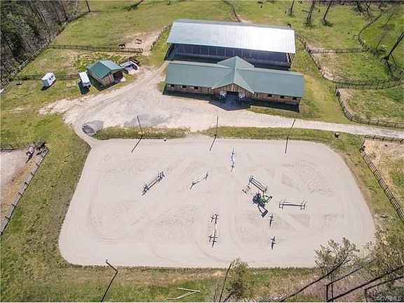 Richmond Virginia horse farm for sale on 21.5 acres with a 14, center-aisle, (12'x12') stall barn with rubber mats & fans; 2 wash racks with hot & cold water; tack room with 14 built-in lockers; laundry room; feed room & bathroom with slate floors. Custom-built barn with Wolmanized outdoor wood, tongue & groove treated pine; its own well & two 240 amp panels. Turnout consists of 5 large fields & 4 paddocks. Equipment shed with run-in, shaving storage & ample trailer parking. Riding amenities include 210' x 115' ring with sand/gravel footing & drainage.