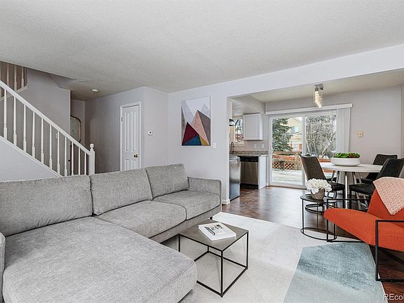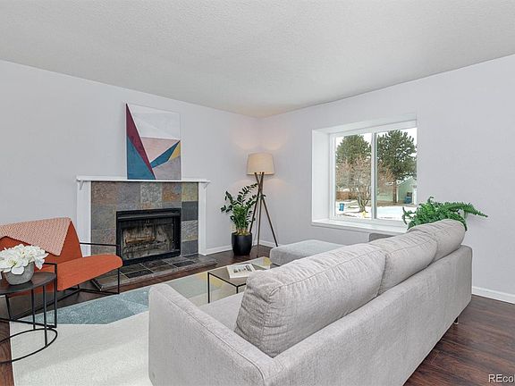 You won't want to miss this beauty! Remodeled and beautiful! This two-story home features a remodeled kitchen with new white cabinets, stainless steel appliances (included), pantry and wine storage. Dining room with new light off kitchen and open to the living room which has an abundance of natural light. Enjoy a cozy evening with the wood burning fireplace for ambience. All three bedrooms are on the upper floor, and secondary rooms are sizeable. The primary bedroom is huge, with a walk-in closet and a gorgeous en-suite. The hall bathroom has been updated and cute! The basement offers some flex space for a family room/game room/teenage hangout or man/woman cave. Area for a bar, and an alcove off the family room for an office/den. The laundry room has room for storage as well as under the stairs. You will love the outdoor space, both a 16x12 deck PLUS a patio for larger gatherings with a firepit. The yard is flat and easy to enjoy playing games. The two-car garage has additional storage in the rafters and has an access door to the back yard. The home has been radon mitigated. All this AND located in Cherry Creek Schools. Sunrise Park is a short walk. Easy access to E-470, Southlands, Aurora Reservoir, Quincy Reservoir, Cherry Creek State Park and I-225.