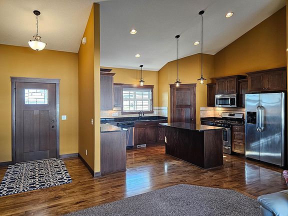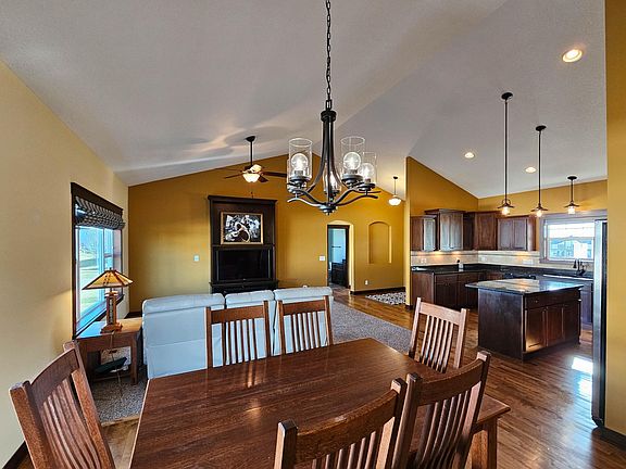 This beautiful rambler home is a former parade model that has been meticulously maintained. One level living boasts an open and spacious gourmet kitchen, including walk-in pantry, stainless steel appliances, granite counter tops, and center island. The vaulted ceilings offer an Open and spacious family room with windows galore for natural light. The main level primary bedroom suite offers a walk in closet, private bath with a walk in shower. The informal dining room walks out to a beautiful patio with a pergola over looking a lovely yard that is perfect for yard games. No need to run up and down stairs with your laundry. It's on the main level off the mud room. The two additional bedrooms are at the other end of the house from the primary bedroom and you'll find another full bathroom. As you walk downstairs, you'll enjoy a huge family room with a cosy stacked stone fireplace. An additional bedroom and three quarter bath. There is an abundance of storage for holiday decorations and other items that aren't used on a daily basis.
