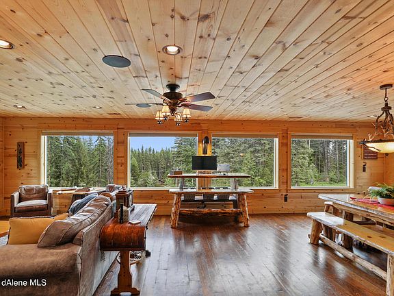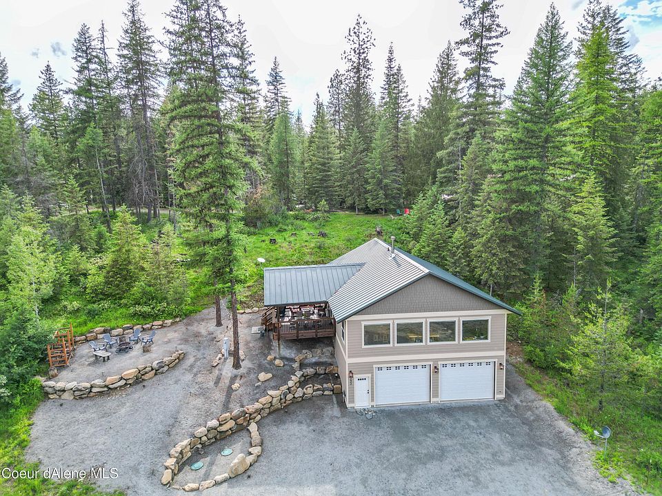 Custom built 3 bedroom 2 bath home with Extra Large finished heated garage. The main living area has beautiful mounatain views from the great room with an open concept kitchen and dining. The kitchen leads out to a covered deck and lancdscaped yard with a fire pit. Also on the main floor is the primary suite with private bathroom as well as 2 guest bedrooms and guest bath. The oversized garage is in the lower level with tounge and groove finished wallls, heat, high garage doors with a half bathroom. This home is located close to Priest Lake Marina and the day use beach on Kalispell Bay Rd. Enjoy all seasons at Priest Lake, snowmobile and ATV right from your door.