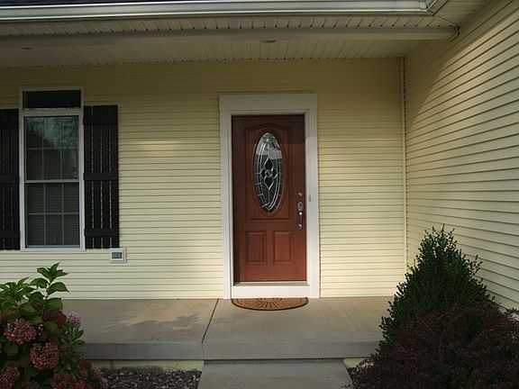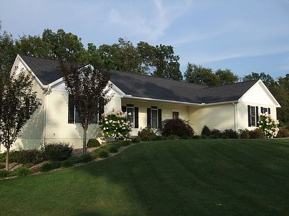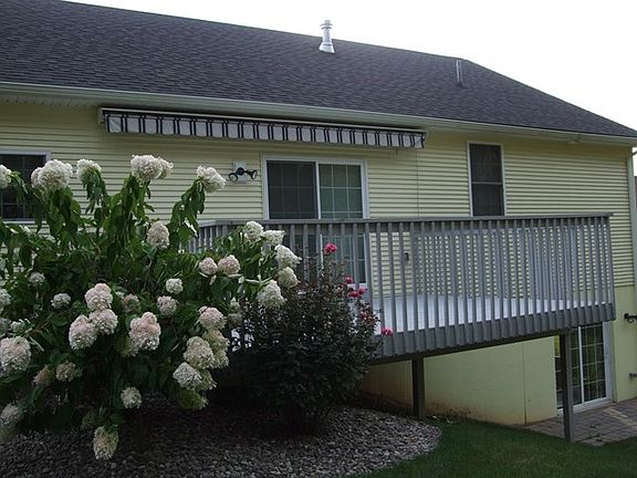 Better than new ranch. Everything done just waiting for a new family. Beautiful landscaping, retractable awning on the deck overlooking tree line, plus front porch. All kitchen appliances plus washer, dryer, and water softener. Custom window treatments included. Open unfinished lower level with superior wall foundations. Walk out with sliding glass door and rough in for full bath. Radon mitigation. Don't miss this one!