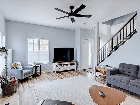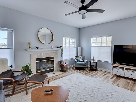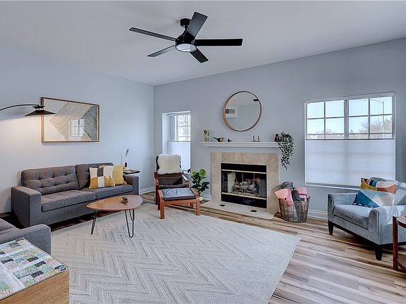Fully remodeled townhome with new AC unit, new white quartz countertops throughout, custom cabinetry, upgraded custom lighting fixtures, marble flooring, fresh paint and more! Private corner unit with sliding glass door from the dining to the low maintenance patio courtyard. Designer kitchen includes all stainless steel appliances, fresh two tone cabinets, subway tile backsplash, pot filler over the stove, breakfast bar countertop, usb outlets, and reverse osmosis system. Enjoy mountain views + new window treatments on every window, insulated garage door, new water softener & completely move in ready! Spacious primary suite with custom statement wall. Ensuite primary bathroom with fashionable tile floors, led mirrors and walk-in shower with custom glass enclosure. Walk in closets in every room! Only carpet on the stairs, laminate & tile throughout! Ideal location near shopping, restaurants, and grocery stores! Plus community pool & clubhouse! Easy freeway access & low monthly HOA fee!