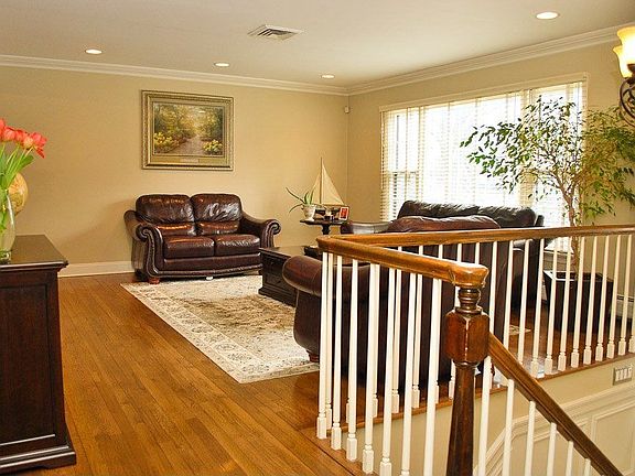 This spectacular bright and spacious West side Bi-level in one of Ridgewood's most sought after location is just minutes away from train, Orchard Elementary and George Washington Middle School, the village and the Bellair tennis courts. The open floor plan on the main level makes this home ideal for entertaining and large gatherings. The large Living Room is filled with natural sunlight due to the property's North-South exposure.The Dining Room with chair rail and chandelier opens with French Doors to the oversized deck overlooking the private yard. Recently renovated gourmet kitchen, features custom wood cabinetry, granite countertops, stainless steel appliances and porcelain tile floors. A decorative stone back splash with built-in pot filler faucet completes this chef's delight. The Master Bedroom, facing the back features its own private bath with stall shower and plenty of closet space. Two additional bedrooms share the hall bath with shower over tub. All rooms offer rich