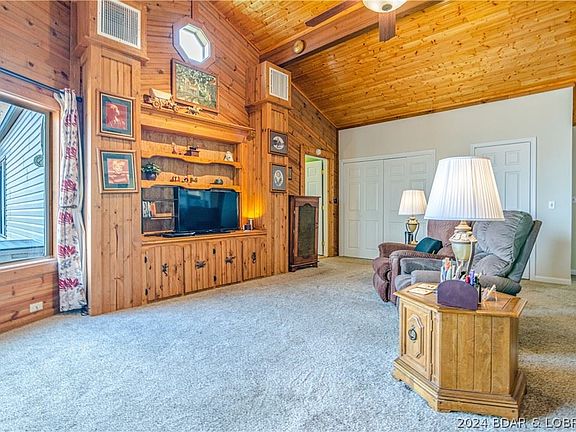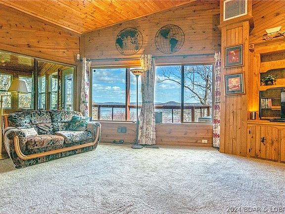 You will not find another home and property like this! Private 5 acres of state park like beauty with over 180 feet of lake frontage & boat dock availability. Home has fantastic views of the water (nearly 5 miles) and was built by an engineer with impeccable attention to detail. Located on the 35 MM near the Hurricane Deck Bridge on the quiet side of Lake of the Ozarks. Off-grid capabilities for electricity, fresh water, & sanitary systems. Home is 3 bedrooms/2.5 baths but could easily be considered 4/5 bedrooms plus an office. Some of the best views are in the sunroom which could also be used as a workout area and leads out to the deck. Just off of the kitchen is the cutest loft perfect for relaxation, reflection or fun for little ones! Also on main level is a storage area which owners are using as sleeping quarters. On the lower level you find a family room which could make a great master suite as well as a storm shelter. With 5 acres, a 2 car garage with storage, and a pull through 1 car garage with RV Hookup capabilities, this place is unique. Walk down the trail or take a utv down to the gorgeous lake frontage. Beautiful outcroppings, trees and nature, just bring your dock!