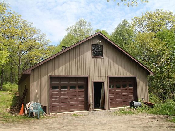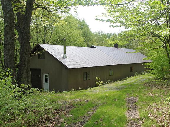 Susquehanna County - 23+ Acres - Rustic cabin situated on 23+ acres with its own private pond. Features combo living/ dining area with appliances, wood burning stove, detached heated 2 car garage, with additional storage attic and heated 192 sq ft with bathroom.