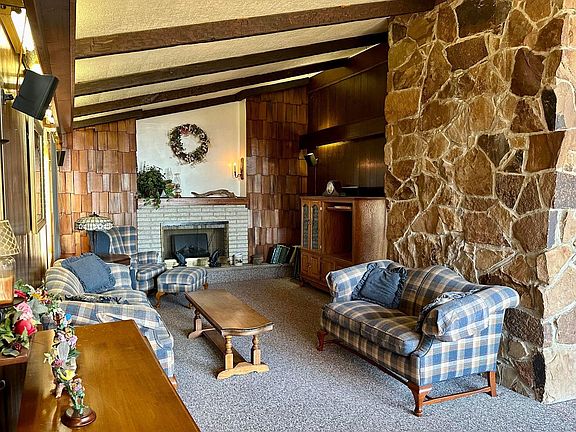 Warm and inviting 1-level rambler in highly desirable Washington Pike area. Front features unique architecture and gorgeous floor to ceiling windows across the open living areas, allowing in tons of natural light. 12-foot ceilings will accommodate the Christmas tree of your dreams. A highlight of the main living area is the natural stone chimney that starts at the open fireplace in the basement, but creates a beautiful accent wall between the spacious living room and adjacent dining room. Custom built kitchen and sunroom with skylights all flow smoothly into one another. 3 nice sized bedrooms, including a primary with its own attached bath and large closet, are also on the main floor, along with an additional full bath and pantry closet. The basement of the home could use some TLC, but it did once house an additional bedroom and full-sized bathroom, all still there but needing work. The basement also has 2 family rooms, one with an open wood burning fireplace, a laundry room, and a model train room with display you would have to see to believe.