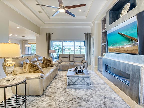 Live luxuriously & comfortably in this extended Salerno model with the most serene golf course & lake views in the resort-style gated community of Jupiter Country Club. **BONUS** Highly sought-after INTERMEDIATE golf membership is grandfathered and available for purchase to the buyer of this home. This membership level is now no longer available and there is currently a waitlist for golf memberships. (Buyer could also opt for social/club membership). This one-story open floor plan boasts 3 bedrooms, 2 1/2 baths, an office/den and a 2 car garage. The extended Salerno model offers a larger covered patio area and an expanded primary suite. Upgraded with Control4 smart home automation throughout for window shades, speakers, AC, TVs and more. Immerse yourself in the ultimate outdoor oasis with a pool screen-enclosure, a large saltwater pool & spa with sun shelf, and a built-in summer kitchen perfect for entertaining. This home is luxuriously appointed and provides all the essentials of easy Florida living with impact glass windows, CBS construction, solid core doors, natural gas, and 16 SEER rated new HVAC installed end of 2022. The great room is adorned with a sleek custom built media wall with a linear electric fireplace, a stunning addition to the home crafted by local Schrapper's Fine Cabinetry. The kitchen features upgraded cabinetry, granite countertops, a wine refrigerator, a gas cooktop, and a custom vent hood. The primary suite is truly a retreat, featuring two walk-in closets with built-ins and a spa-like primary bath with dual vanities, a makeup area, walk-in shower with frameless glass enclosure, and a large soaking tub. Jupiter Country Club is a luxury gated community conveniently located within close proximity of I-95 and the FL Turnpike, beaches, shopping, restaurants, parks & nature preserves. Club amenities include a Greg Norman designed golf course, 2 resort-style pools, the newly remodeled Sway restaurant, a state-of-the-art fitness center plus yoga/mat pilates/barre classes, tennis, bocce ball, pickle ball & basketball. Live your best life here!