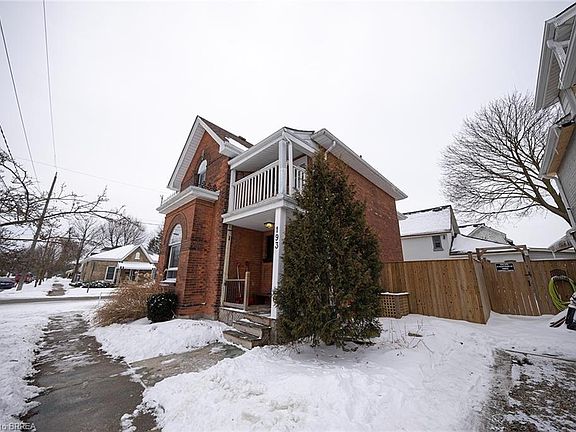 Welcome home to 193 Chatham Street in Brantford, a charming all brick century home (circa 1893) centrally located in the Terrace Hill neighbourhood. This 5 bedroom home has 2 full bathrooms and 1,814 sq ft. The main floor of the home has hardwood flooring throughout, 2 bedrooms at the front of the home, a living room, and a large eat-in kitchen. The kitchen has plenty of cupboard space with matching appliances, 2 refrigerators, over the range microwave, and a built-in dishwasher. A back door from the kitchen exits to the back of the home. The 2nd floor of the home has wide pine plank flooring in all rooms, access to a balcony that sits directly over the front porch, 3 bedrooms and two 4 pc bathrooms. The bathroom was renovated in 2013 and an additional bathroom was added at this time. This home has all new windows and exterior doors and renovations that include doubled insulation in the attic, rebuild of larger stairs, and rebuild of the lower front porch. The partial, unfinished basement with outside access is ideal for seasonal or extra storage! Other upgrades include Furnace (2011), Central Air (2013), Kitchen (2013), Shed (2013), Roof (2014), Fence (2020). This property is in a mature neighborhood, close to schools, grocery stores, universities, public transit, and many other amenities.