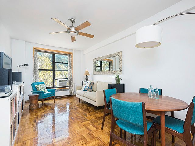 This spacious 1.5 bedroom home in the coveted Clinton Hill Co-ops is the opportunity you've been waiting for. The updated windowed kitchen with stainless steel appliances and breakfast counter gives you all the room you need to explore your culinary aspirations. Or have a sit-down meal with four or more guests at the dining table in your spacious living room with oversized windows overlooking tree top views, letting in an abundance of light. Continue to use the former dining alcove as a second bedroom or create your dream office space. The oversized bedroom easily accommodates a king-sized bed with plenty of space for a desk as well. Featuring two large bedroom closets, a linen closet, a coat closet andthe extra-large entry closet, your storage opportunities are abundant. The North Campus of the Clinton Hill Co-ops is a pet-friendly community with attended lobby located in prime Clinton Hill, near the plethora of shops and restaurants on Myrtle and DeKalb Avenues, steps to Fort Greene Park, Pratt Institute, and the G train. A short distance to the C,B,Q,R,2,3,4,5 trains and Long Island University. The only thing missing is you.