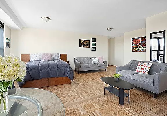 Unsurpassed views from this top floor, extra-large loft/studio - Easily convertible to a Junior 1-Bedroom! This is a bright, spacious, move-in ready co-op home located in historic Clinton Hill (just 20 minutes from Manhattan), with five oversized windows with unobstructed views of Brooklyn and the Manhattan skyline. The loft-like open floorplan is spacious enough for distinct sitting, dining and sleeping areas, and a small bedroom has been added to other similar units in the building. The modern renovated kitchen is large so you can really cook and it features stainless appliances (including a dishwasher), clean and modern cabinetry, and a window. All the windows were replaced with new and more efficient windows in 2020, and the original oak floors were just refinished throughout, plus it has two large closets with extra storage space. The building is part of the Clinton Hill Cooperative Apartments and has renovated laundry facilities, elevators, an on-site maintenance staff, 24-hour Security, bike storage, package room and a common courtyard. New, more efficient and quiet windows were installed in all apartments in 2019/2020. Also, Radiator Labs' Cozys were installed on all radiators. The Radiator Lab Cozy is a smart, internet-connected, thermostatic cover for radiators. The G and C trains are the closest, but nearly every train in the system can be found nearby. Neighborhood amenities include some of the best restaurants in the borough along Dekalb Avenue and Myrtle Ave and new attractions in the Navy Yard, including a ferry stop, Russ and Daughters, and Wegmans grocery store. Fort Greene Park, two farmer's markets, BAM, Pratt Institute and sculpture garden, City Point, Barclay's Center, plus the newest Whole Foods and Apple store are within minutes. Pets are Allowed! Pied-a-terre OK Sublets permitted after two years of ownership Wired for Fios The Clinton Hill Co-ops are Smoke Free Buildings.